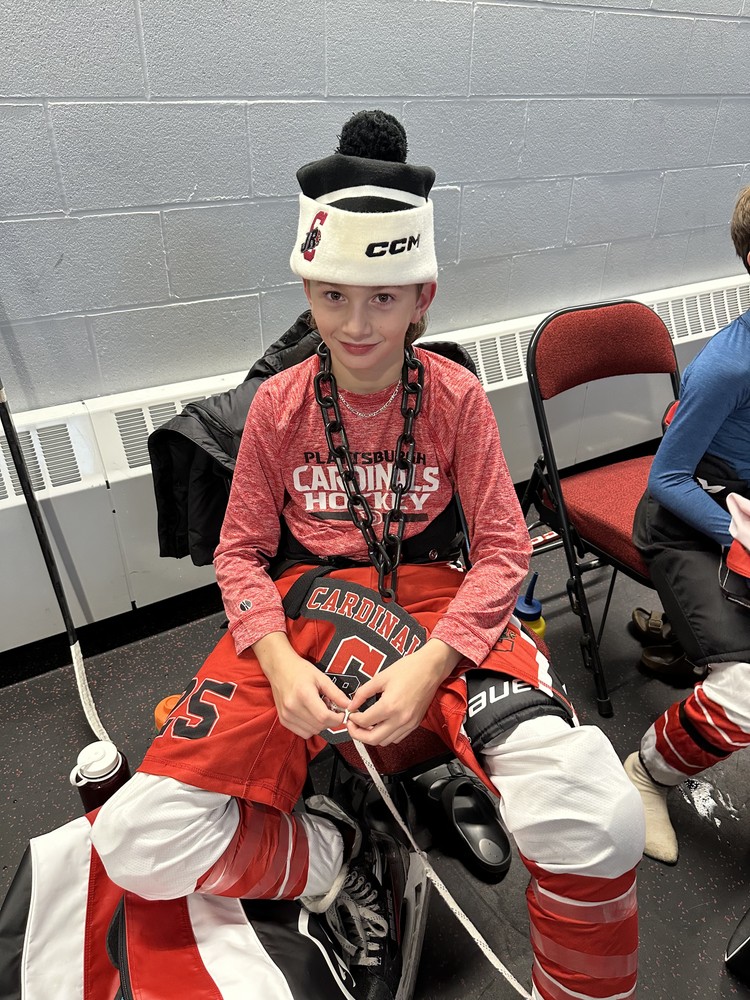 In our second game against St. Albans, Carson Taskin passed the torch to Louis Tremblay. Big Lou did an awesome job of helping the team all day and even managed to put points on the board in both games!