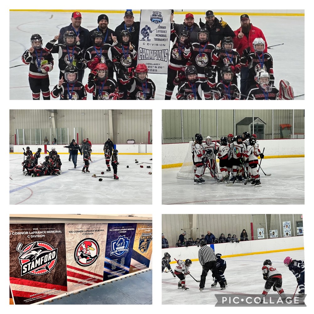 This Roadrunners team spent the weekend in Saratoga at the Connor Lafrance Tournament. Kicked things off Friday night with a tight match and defeat over Saratoga. Saturday morning they were back at it with a big victory over Nonotuck, and they didn’t disappoint in the evening game taking over the Stamford Sharks with a game winning goal by Jace Reil with 14 seconds left in the game. They took the Sharks on again Sunday morning in the championship game, where the girls came to play - Arianna, Paepyn and Lillie all scoring. They took home the 1st place win after an undefeated weekend!