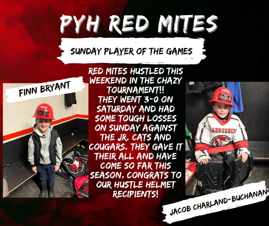 The kids continued to skate hard, no matter what challenges they faced! They have had a lot of ice time and experienced some hard losses but also came away with some big wins!! Asher Wells was goalie a couple weeks ago and received the hustle helmet for stepping up and making some amazing saves! Nice work & great job to all red mites! You battled through some sicknesses and we are so proud of you. Now time to rest up & gear up for CSB this Saturday!
