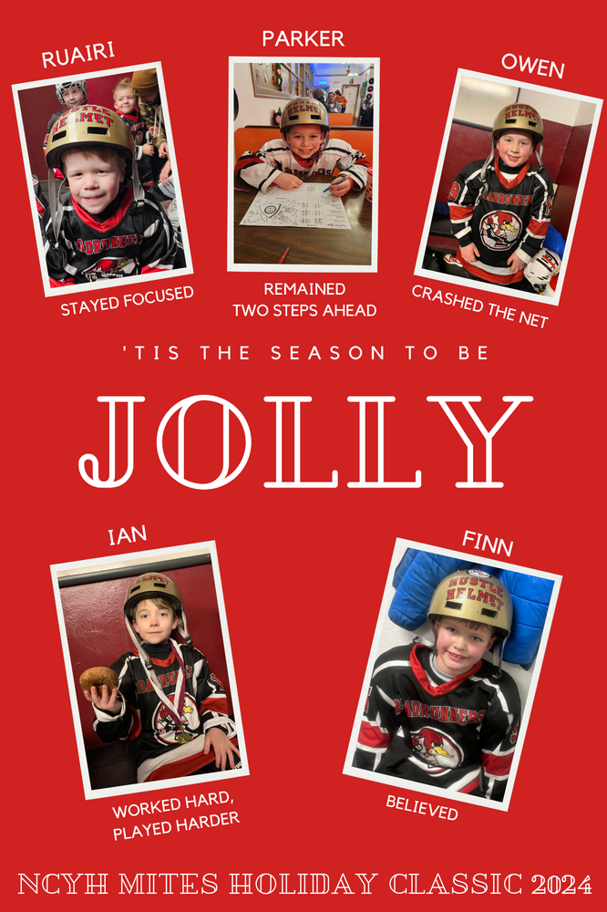 'Tis the season to be jolly... and hustle on the ice! Great teamwork by all at the Mites Holiday Classic this weekend. An extra special "Fa, La, La, La, La" to Ruairi, Parker, Owen, Ian and Finn for earning the Hustle Helmet. Good thing Santa was there to see it all!