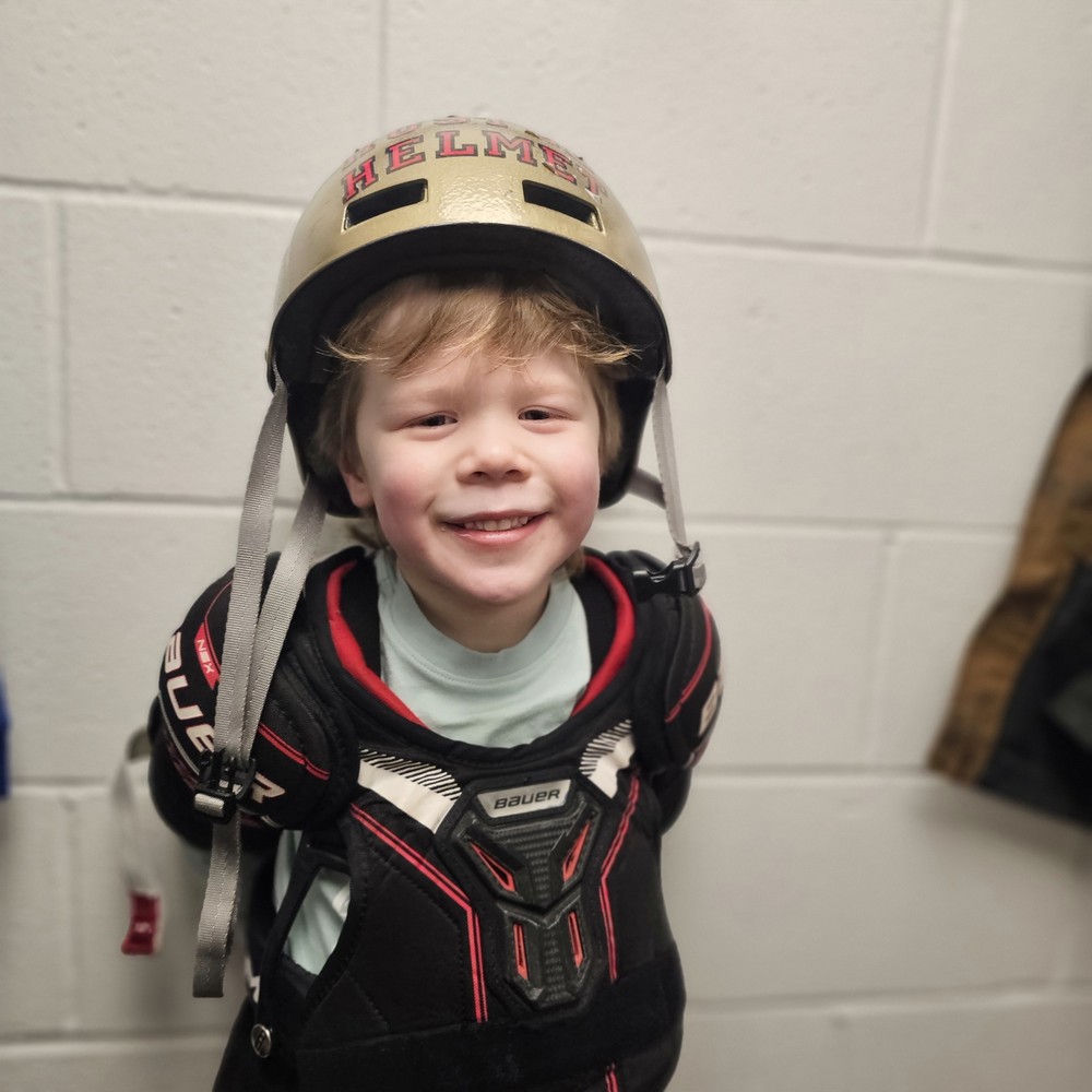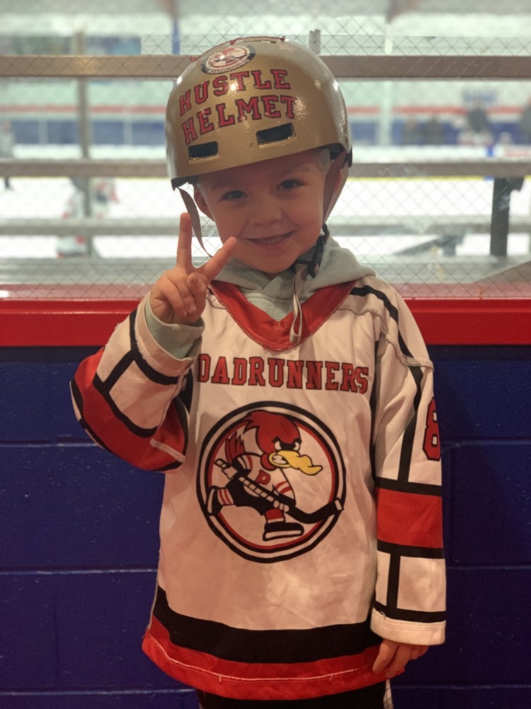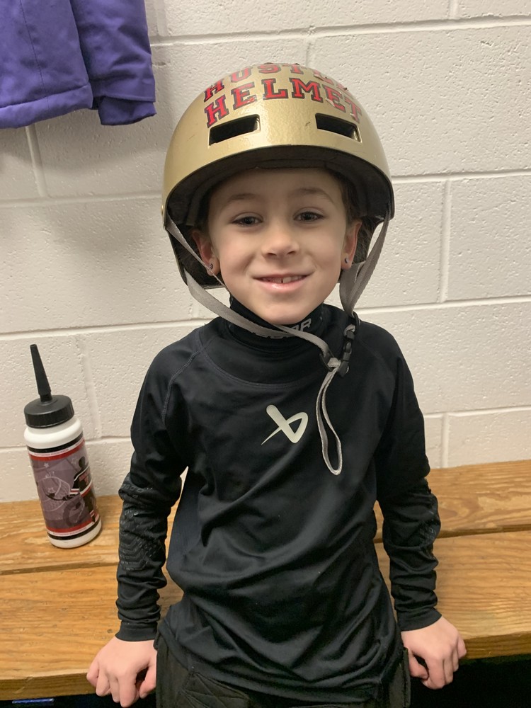 Congrats to Riuari for earning the hustle helmet last weekend! We have all loved watching you skate better and better each game. Keep up the good work, buddy! Our team worked together and showed we have what it takes to beat the Cougars for the very last time this season. Go Dark Blue!!