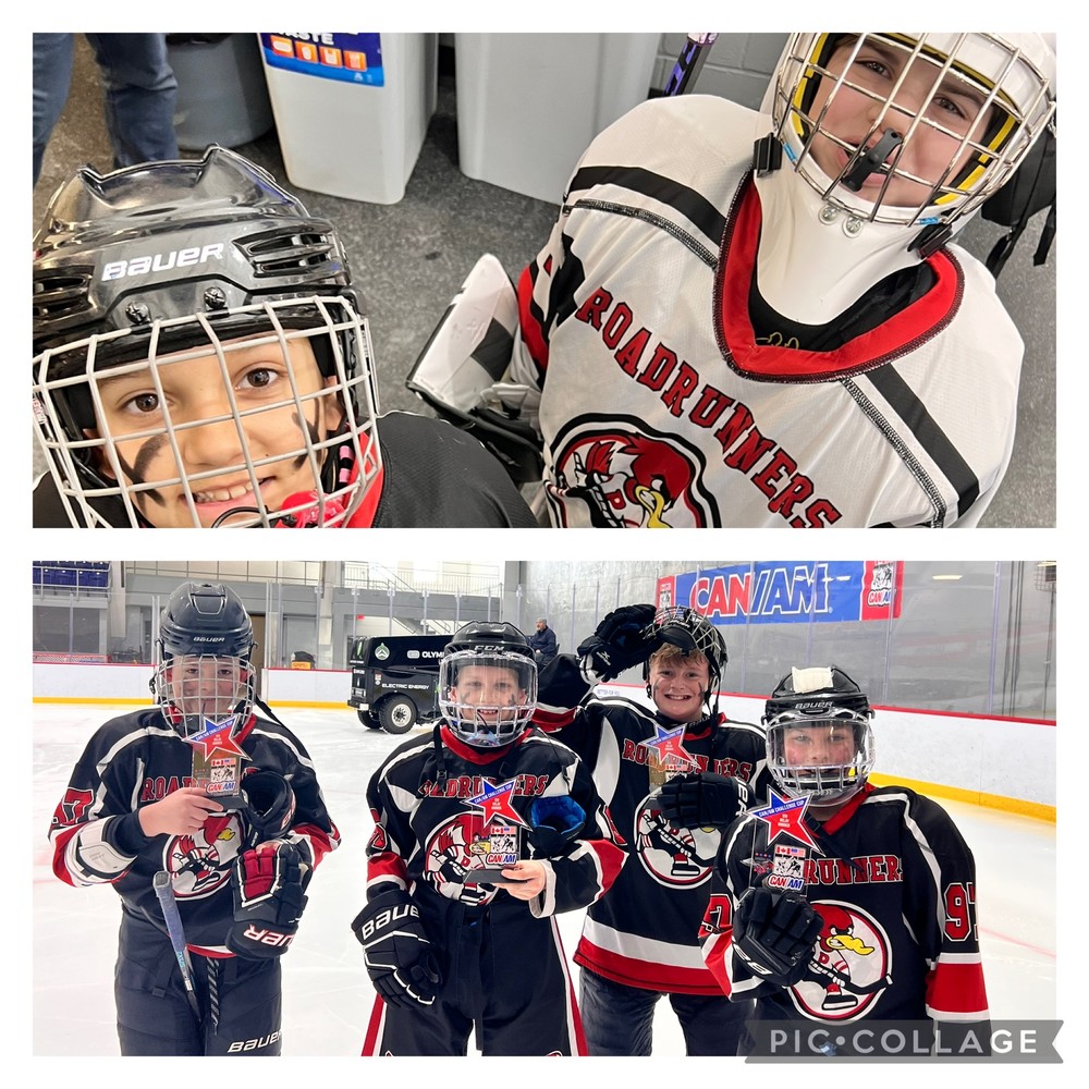 12u Roadrunners are headed to the 1000 Islands for their next league game after a nail biting win over Canton today. At the end of 3 periods a tied 4-4 game went into 3v3 sudden death OT. With one minute left Easton Field scored off a rebound assist from Oliver Hicks. The celebration commenced! The whole team played their hearts out today and had the crowd on the edge of their seats. Great work to the coaches - Jason, Bill and George